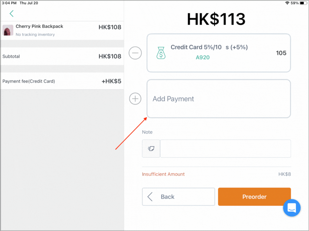 Tap the amount to edit the amount payable for the first payment option, and make it lower than the total amount payable for the order.