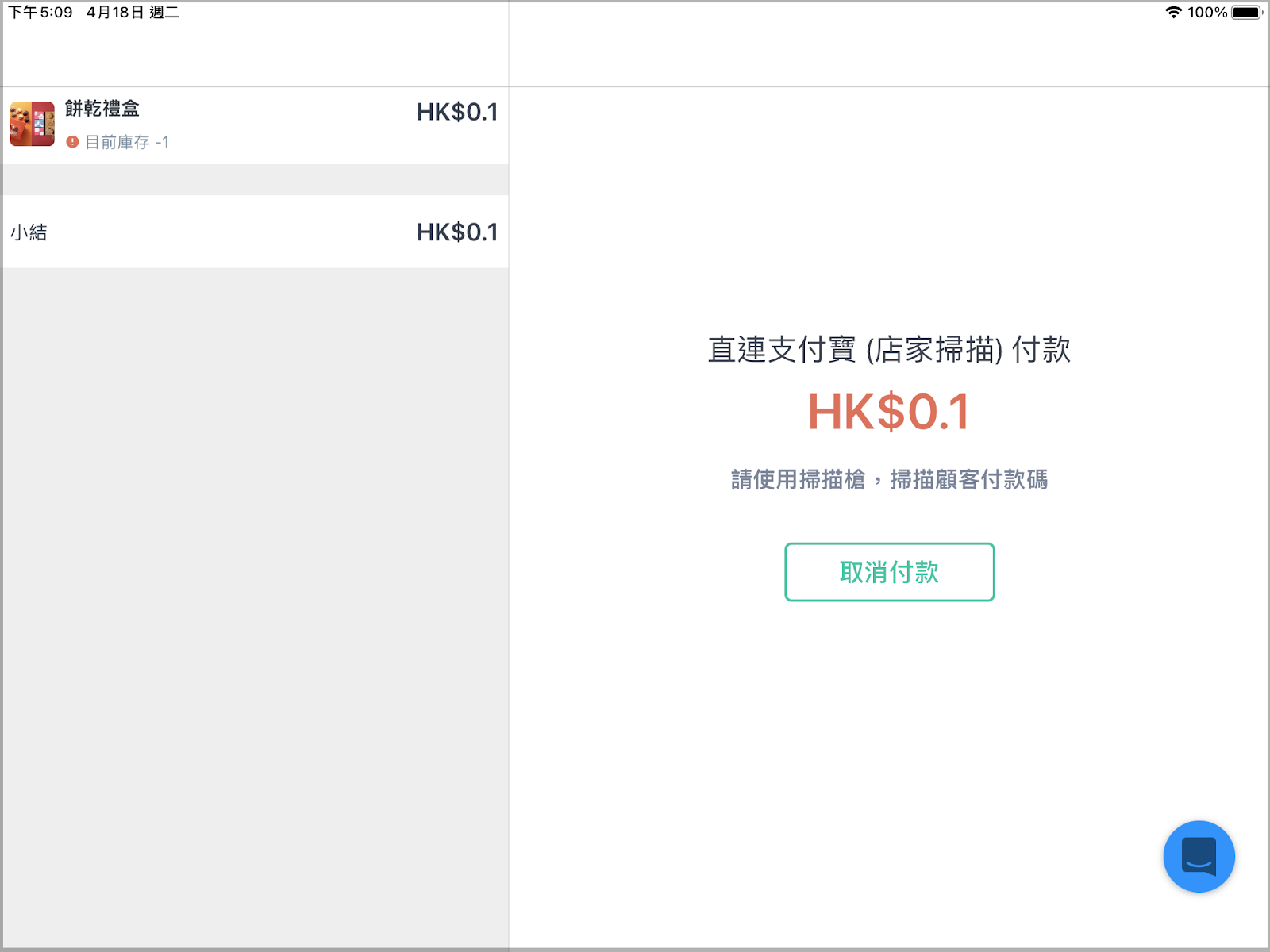 結帳時選擇直連支付寶,顧客出示付款碼供您掃描,或者主動掃描您 App 上的收款碼,即可無接觸、無需刷卡機零秒付款!