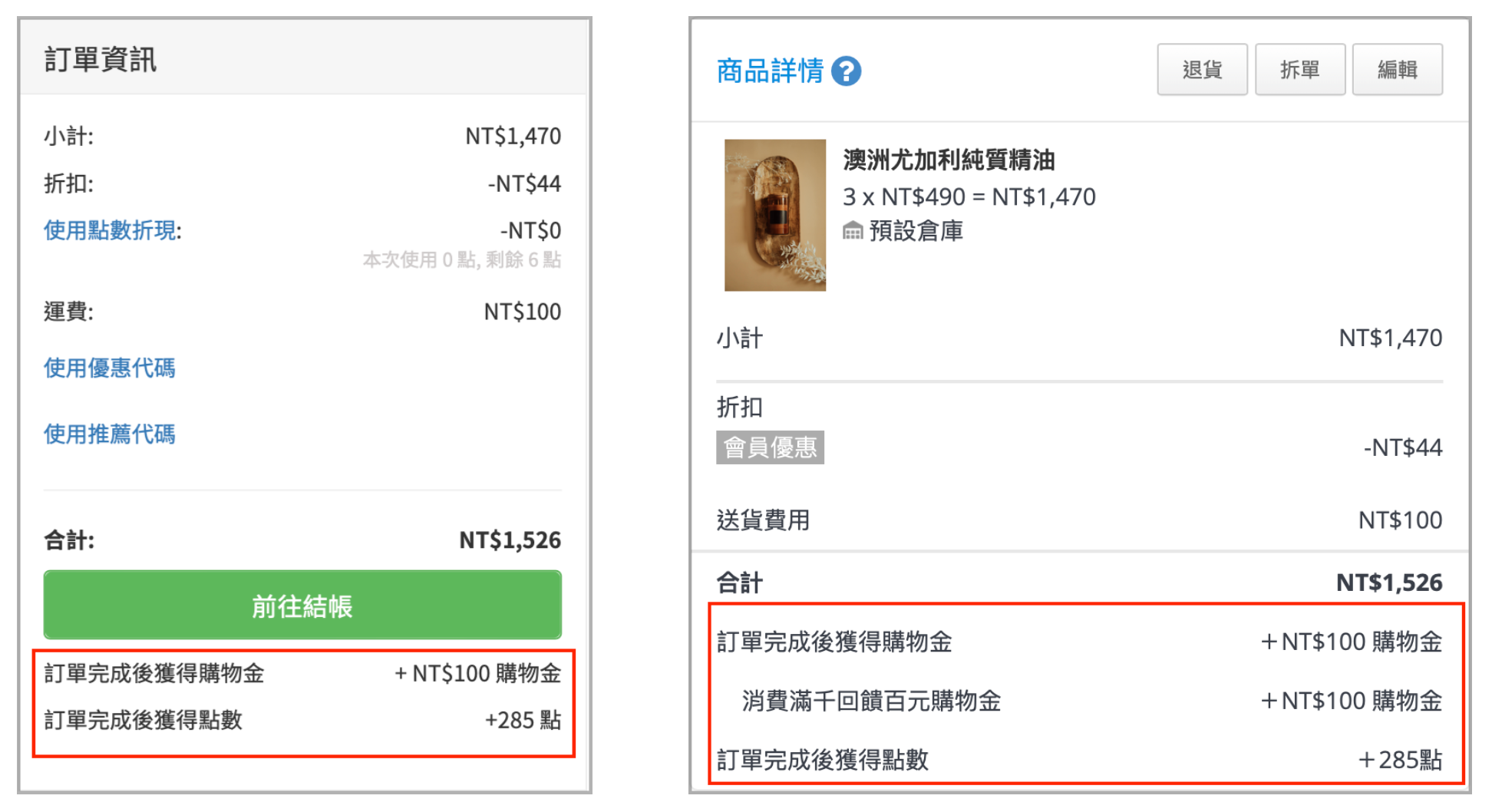 💡額外加碼💡 購物金、點數的自訂訊息也一併優化為訂單完成後才會發送通知唷!